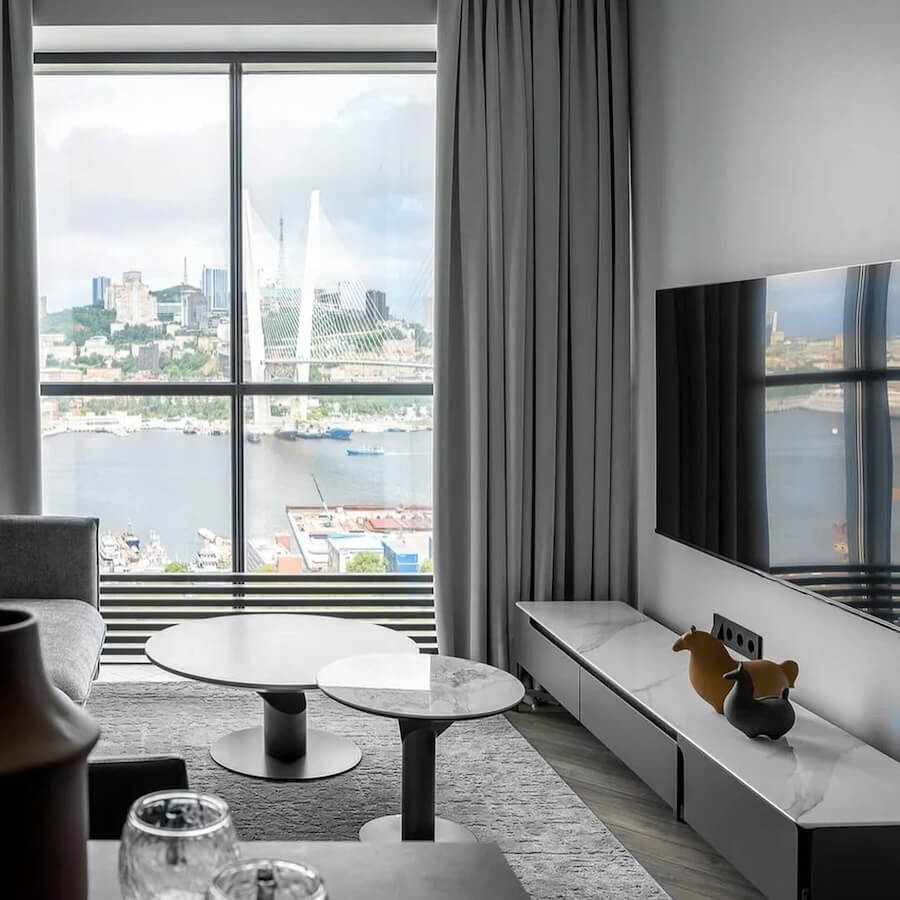 Дизайнер выезжает на объект (Владивосток и Приморский край) и знакомится с вашим интерьером. Ваши пожелания, особенности помещения (форма окон, наличие второго света, стиль интерьера) – все это учитывается.