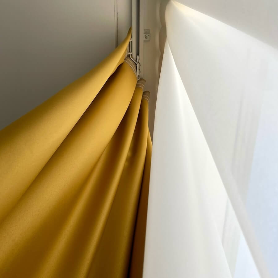 Дизайнер делает замеры окон, обсуждает с вами стиль, ткани, карнизы и солнцезащитные системы. Он также поможет вам определиться с типом пошива и установки штор.